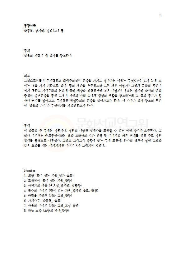 자료(대본, 악보, 음원, 실황영상 등)들을 제공해 드립니다.